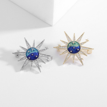 Geavanceerde Ontwerp Persoonlijkheid Europese En Amerikaanse Temperament Kraag Pin Droom Blauw Cosmic Star Zon Broche