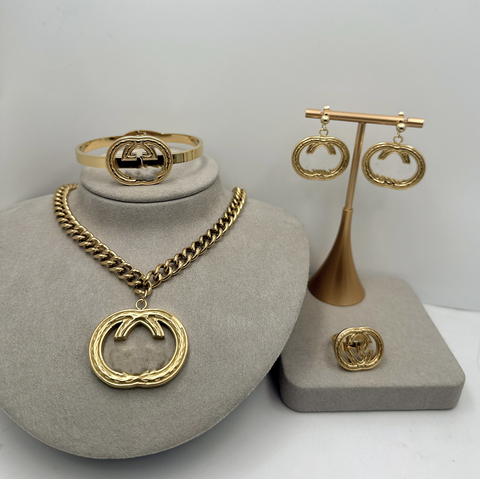 Luxe Geïnspireerde Designer Merk Sieraden Rvs Ketting Armband Oorbellen Ring Vrouwen Sieraden